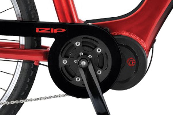 The E3 Vibe Plus uses the Currie Electro-Drive Centerdrive 350W motor. The mid-drive motor is intergrated low in the bike's frame creating a low center of balance.